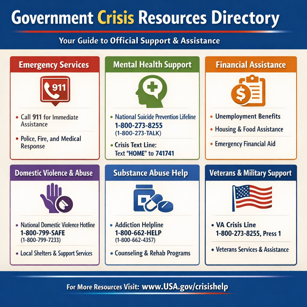 Department of Justice compiled list of crisis hotlines and mental health resources. Comprehensive emergency contact information.